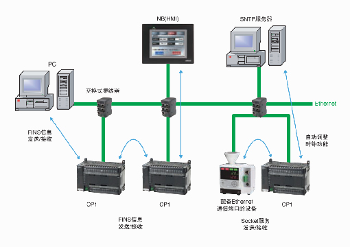 标配Ethernet端口的CP1H-EX、CP1L-EL/EM型,使用自动在线连接功能,通过Ethernet与CX-Programmer轻松在线连接。无需设定IP地址等,与通过USB接口连接CXProgrammer时同样轻松。