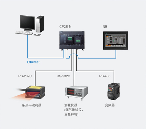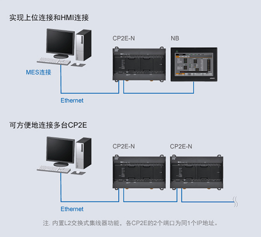 使用CP2E的Ethernet连接多台装置模块,可灵活提供与终端用户相匹配的装置规模 ,有助于设计的效率化和提高生产效率。