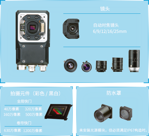 可以自由组合“拍摄元件、镜头、光源”这些决定智能相机性能的重要模块。也可以根据检查、测量的要求规格配置最佳相机,