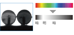 将摄取的图像转换为黑白256级灰度的浓淡数据进行处理。与2值化处理相比,可进行稳定的高精度检测,但不能摄取微妙的色彩变化。