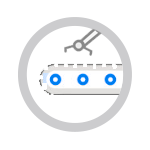 不用停止检测对象,可以连续运行 拍摄校准标记 由校准标记位置进行零件搭载位置的处理