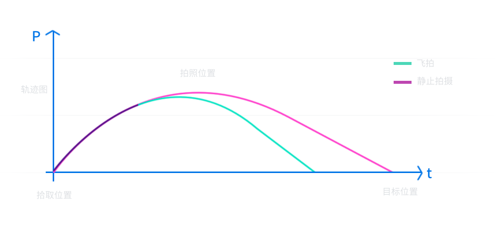 在工件拾取过程中,因机械臂的夹具或吸盘的瞬间作用使工件发生位置偏移,产生位置误差影响工件放置的精度。使用飞拍技术可以在物体运送的过程中,由相机自动拍摄物体的实际位置,对物体的实际位置进行二次修正,在保证运行速度的同时提高放置精度。