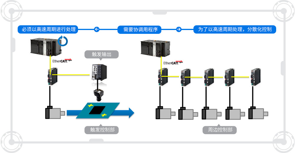 通过分散控制多台PLC,缩短了控制周期。