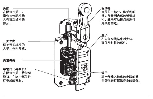 限位开关 用语说明■一般用语限位开关: 为保护小型开关不受外力、水、油、尘 埃等的侵害而将其装入金属外壳或者塑料 外壳中的开关。(以下称开关) 额定值一般指作为开关特性和性能的保证标准的 量, 如额定电流, 额定电压等, 以特定 的条件为前提。 有接点指利用接点的机械开合来实现开关的功能。 接触形式根据各种用途构成接点的电气输入输出电路的方式。 树脂固定(塑封端子)用导线对端子部分完好配线, 通过充填树 脂使该部分固定, 消除暴露在外的带电部 分, 提高密封性的一种方法。 ![]() ■与结构、构造相关的用语 ![]() ■关于寿命的用语 机械寿命 将过行程(OT)设为规格值,在未通电状态下的开关寿命。 电气寿命将过行程(OT) 设为规格值,在额定负载(阻性负载)下的开关寿命。 FP (自由位置)没有施加外力时驱动杆的位置。 OP (动作位置)向驱动杆施加外力,使可动接点刚从自由位置的状态开始反转时的位置。 TTP (总行程位置)驱动杆到达驱动杆停止档时的位置。 RP (返回位置)减少对驱动杆的外力,使可动接点刚从动 作位置反转到自由位置状态时驱动杆的位置。 OF (动作力)为了从自由位置移动到工作位置所必须给 驱动杆施加的力。 RF (回复力)为了从总行程位置移动到回复位置,必须 对驱动杆施加的力。 PT (预行程)驱动杆从自由位置到动作位置的移动距离 或移动角度。 OT (过行程)驱动杆从动作位置到总行程位置的移动距 离或移动角度。 MD (应差行程)驱动杆从动作位置到返回位置的移动距离 或移动角度。 TT (总行程)驱动杆从自由位置到总行程位置的移动距 离或移动角度。 对目录中使用的上述规格用语说明如下。 EN60947-5-1「电气机械控制电路设备」的EN规格。和IEC60947-5-1的内容相同。