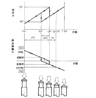 注. y是相对于全行程(TT)的比率,表示挡块的按下量应达到TT的50~80%(50~70%)。