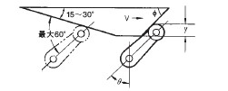 ●关于连接 ·请不要在1个开关的接点上连接异极、异种的电源。 ·在电路设计时请不要在接点间加电压。(可能导致混触熔化) ·即使在发生异常情况时, 也不要出现短路的电路。(可能导致导电部位的熔断) ·开关用于电子电路(低电压· 低电流) 1. 接点的振动、震颤会带来问题时,请采取下面的措施。 ●关于使用环境 ·请不要在有引火性气体、爆炸性气体等环境中单独使用开关。 ·限位开关也会由于在室外或特殊的切削油的关系导致开关材质变质及劣化, ·请不要在有热水(+60℃以上) 的地方和水蒸气中使用。 ·操作人员不小心将开关安装在易发生误动作或事故的地方时,请加装外罩。 ·开关受到连续的振动和冲击时,产生的磨损粉末可能导致接点接触不良和动作失常、耐久性下降等问题。 ●关于定期检查和定期更换 ·在一直按下的状态下, 如果开关频率较低(1次以下/日), 则可能会由于零件的劣化导致复位不良。 ●关于开关的保管 ·请避免在恶性气体(H2S、SO2、NHO3、Cl2等) 和有尘埃、高温多湿的环境中存放开关。 ●关于耐气候、耐寒、耐热规格 为了提高耐气候、耐寒、耐热性能, 使用了硅橡胶, 硅橡胶部分情况下可能产生硅气体(常温下可能发生, 高温下产生量会进一步增加) 。 这种气体通过电弧能量反应, 会生成二氧化硅(SiO2) 。二氧化硅(SiO2) 不断堆积在接点上, 会发生接触障碍, 可能影响设备的正常运行。 ●关于室外使用 ·在有泥水、粉尘的地方, 请使用机械部位密封的橡皮帽限位开关。 ●关于操作 ·为避免开关的驱动杆急速返回或受到冲击, 请考虑操作体(凸轮、挡块等) 进行操作。 ·在旋转运动、直线运动时也必须在开关的驱动杆上施加正常的载荷。 如下图所示, 挡块触到摆杆时, 动作位置将无法稳定。 ·请不要在开关的驱动杆上施加偏载荷, 或者引起局部磨擦。 ·如果从斜面向开关的驱动杆(滚珠) 上施加载荷, 可能会造成驱动杆和旋转轴的变形、折损, ·请设置驱动杆不超过过行程(OT)。过行程(OT)超过限制的话,可能引起故障。 ·过行程过大时, 可能会诱发早期的故障。因此在安装时必须进行调整, ·在针状按钮型中, 按钮的行程和操作体的行程必须在一条垂直线上。 ·请配合驱动杆的特性使用开关。 ·请不要对驱动杆进行加工而导致动作位置的变化。 ●挡块的设计 关于挡块的速度及角度与驱动杆的关系 <滚珠摆杆型驱动杆> (1)挡块不会越过驱动杆的情况下