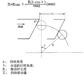 ·对应于合适的行程, 挡块移动量的表示式如下。