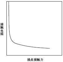 接触电阻根据接点接触力而变化, 下图表示了其关系。接点接触力变大的话接触电阻变得较稳定(变小), 相反当接触力变小的话就开始变得不稳定(变大)。