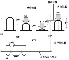 机械寿命:指接点不通电, 以规定的操作频率将过行程(OT)设定为规格值使其运行时的开关寿命。