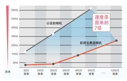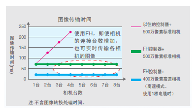 随着对品质要求的提升,相机的分辨率亦越来越高。为配合设备的运行速度,必须对高分辨率图像进行高速处理,因此在图像输入时间上做了大幅改善。 即使增加连接的相机台数,图像分辨率高,也能借助高速图像输入大幅缩短单位生产时间。