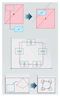通过测量工件边线来对位的方式。“没有对位标记”、“无法测量工件角度” 时也可应对。这个方法最适合圆角工件的定位。