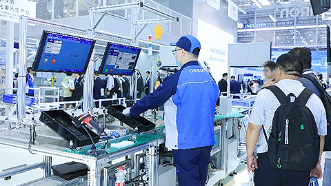随着检查项目增加,检测作业日益复杂化。希望提高检测产能、削减设备调试工时、应对不断升级的品质要求等检测课题日益凸显。在“数字工程革新”展区内展示的欧姆龙六轴多关节机器人高速多点检查,仅用一个控制器来统合控制视觉图像传感器、机器人、安全等设备部件,让目视检测实现自动化。同时可紧急应对临时的增产需要,通过数字孪生与3D仿真,快速生成生产设备的数字模型,对设备运作的整个过程进行一比一仿真,轻松实现生产设备导入前的设计研发,快速应对变种变量的柔性生产,以及后期设备的远程维护、检修等。