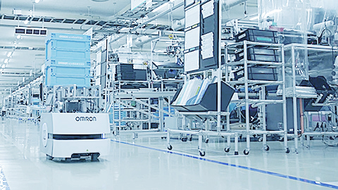 通过单元生产提高多品种少量生产的效率,需要将所需部件在必要的时间切实送到有需求的地点。虽说这项作业至关重要,但并非是与提高产品价值直接相关的作业。绫部工厂引入自主行走的移动机器人,实现了搬运作业的自动化。人与机器人相互协作,实现安全搬运,并能灵活应对布局变更。因此现场作业员可以将精力投入附加价值高的工作,实现了前置时间的缩短和在制品库存的削减。