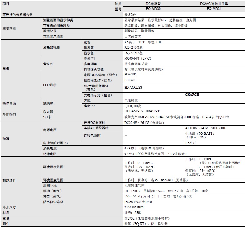 | 最高响应频率 *2 | 200kHz(使用FQ-MWD005/FQ-MWDL005/FQ-MWD010/FQ-MWDL010作为输入输出电缆时) |