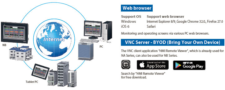 NB系列具备密码保护功能,可轻松解决客户自行开发工程的安全问题。而且,多样化的安全选项还容许用户针对画面、按钮和输入设置多达16种最低安全等级以及针对每位操作人员设置多达32种特定的权限控制等级。此外,还配备寄存器状态(位/字)控制选项(用于查看实际情况与预定义值的差别)和标准操作确认查看选项(用于确认操作人员是否已执行过关键操作)。
