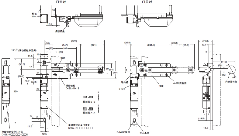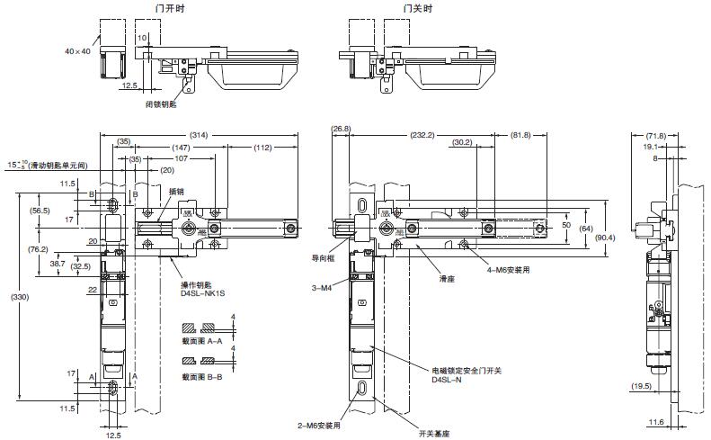 *2. 将D4SL-NK5上下颠倒使用时,操作钥匙安装位置为60.3min. 61.2max.。