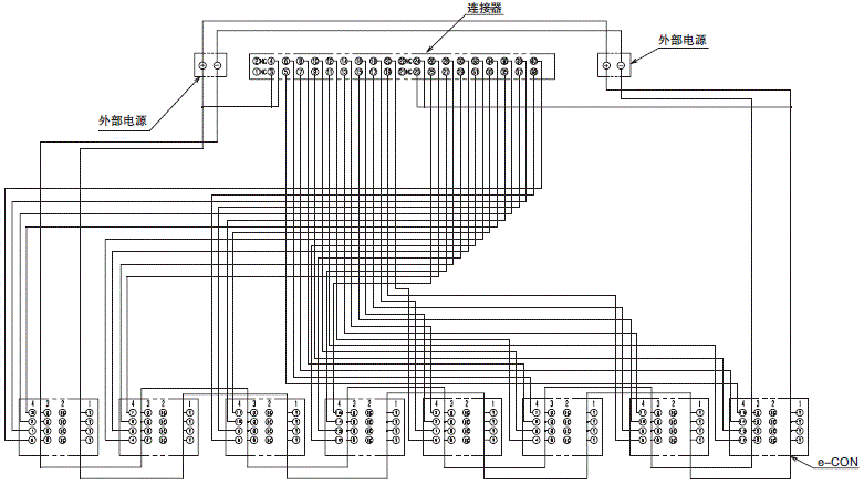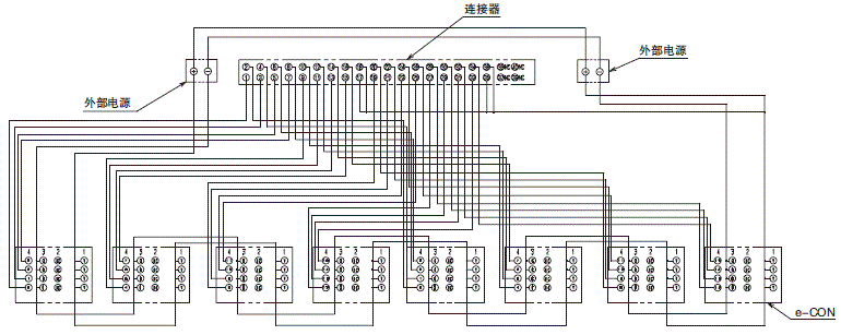 e-CON地址分配用于结合XW2R-G32GD-M1-COM和四个XW2R-N08GD-COM。
