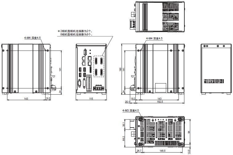 *2 各相机电缆有极性。请将贴有铭牌的一侧与控制器连接。