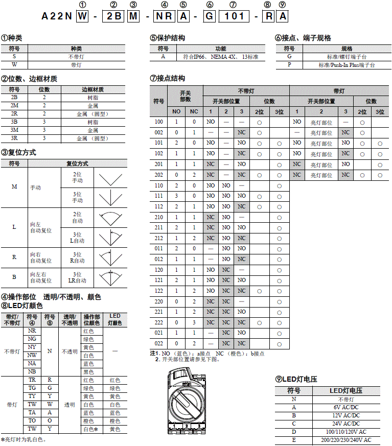 | 不带灯 | A22NS-□□□-N□