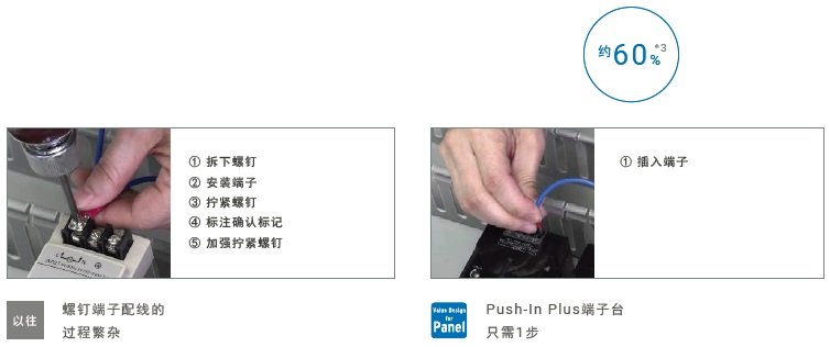 采用Push-In Plus端子台&前入/前出,无需技术人员即可轻松快速完成配线作业。