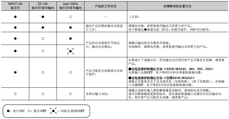 电流持续超过额定规格时断路、断电复位 请参见下述的“●过电流保护”。 |