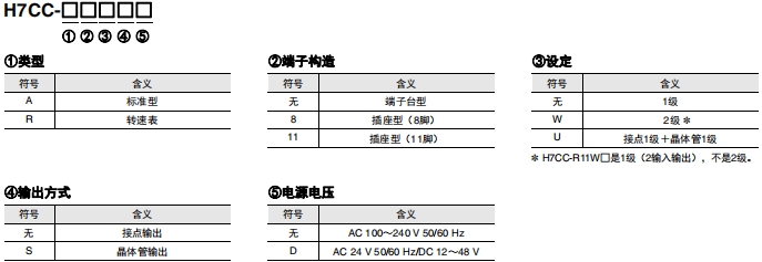 2级设定 | 接点输出(1a+1c) | AC100~240V | H7CC-AW | |||