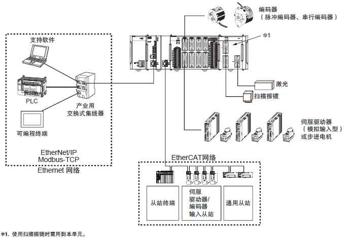 使用CK3M系列CPU单元的内置EtherCAT端口,连接到EtherCAT的各种从站。