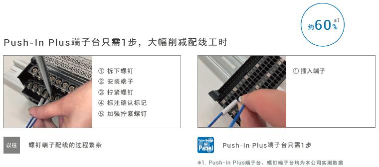 Push-In Plus端子台只需1步,大幅削减配线工时
