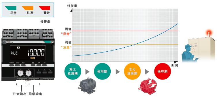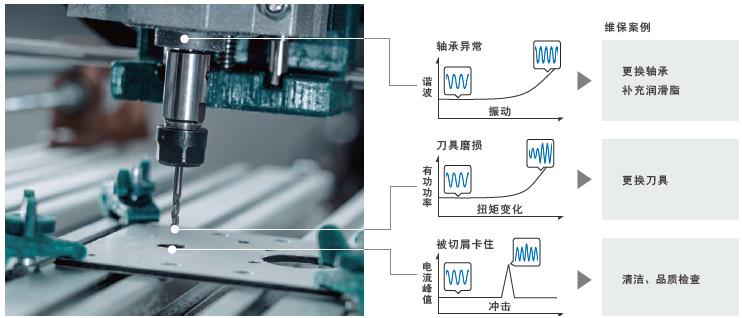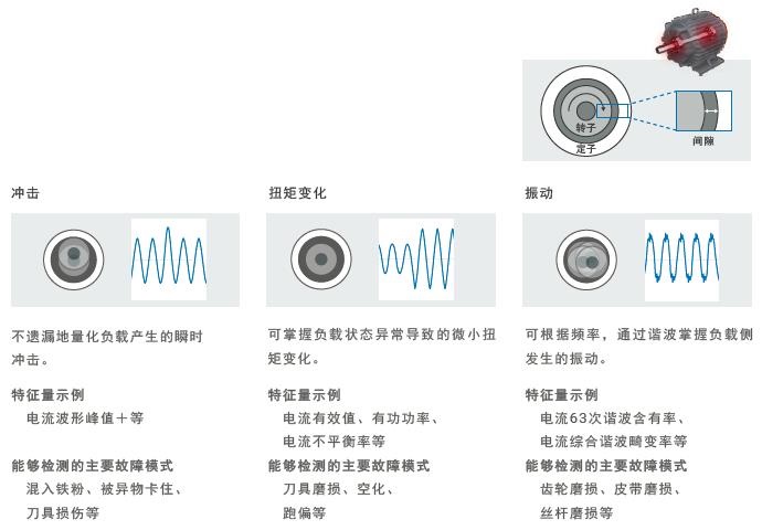 制造现场中运行的不仅有感应电机,还有大量伺服电机,由于电机和负载有多种组合,存在多种故障模式,必须设法全面捕捉变化。经验丰富的维保人员可以通过五感识别异常迹象,而K7DD能够取而代之。监视设备的电流和电压等电力品质,及早识别异常迹象。通过实时监视,无需关停设备也能监视状态,从而过渡到基于运行状态的维保。在此基础上,还能获取各种电力品质数据的特征量,用于识别多种故障模式。