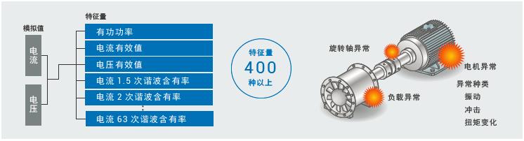 K7DD可利用测量的电压和电流计算出约400种特征量*1,检测具有多种特征的异常。