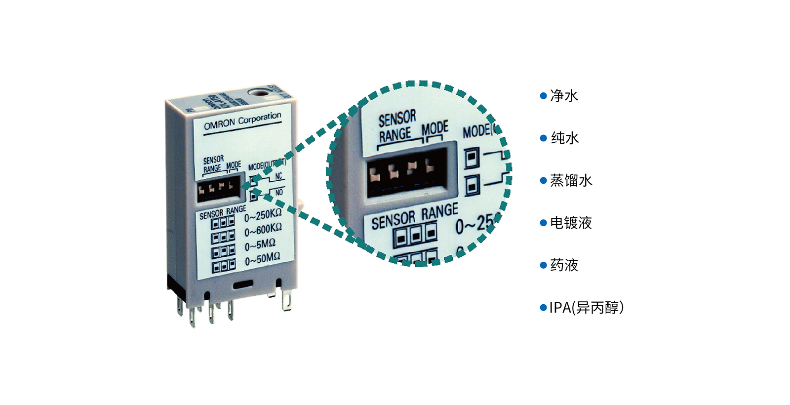 从50MΩ电阻液体到普通水都能稳定检测。可设定4级检测范围,能够根据液体特性检测。