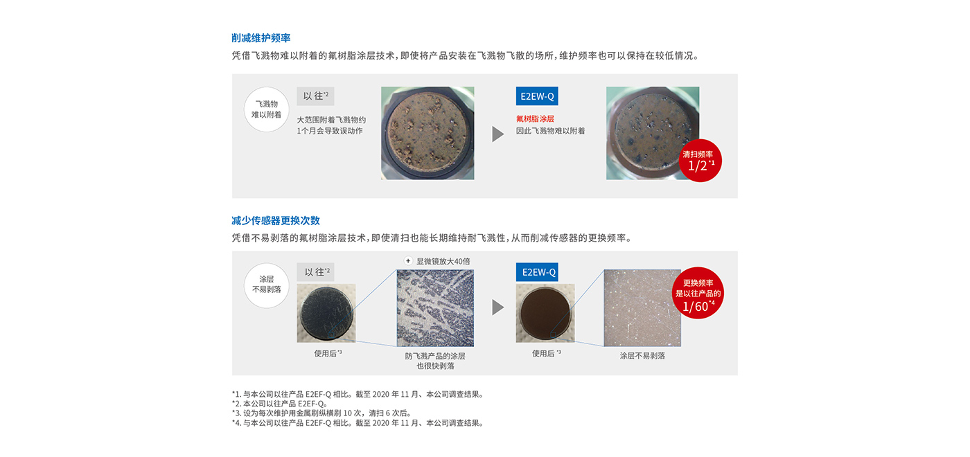 凭借飞溅物难以附着的氟树脂涂层技术,降低焊渣的堆积。