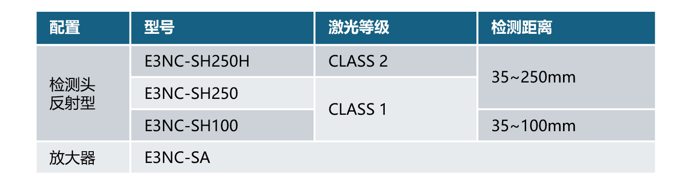E3NC-S采用放大器外置型设计(型号E3NC-SA),CMOS激光头能保证远距离时的稳定检测,防护等级IP67同时还具备防水功能。