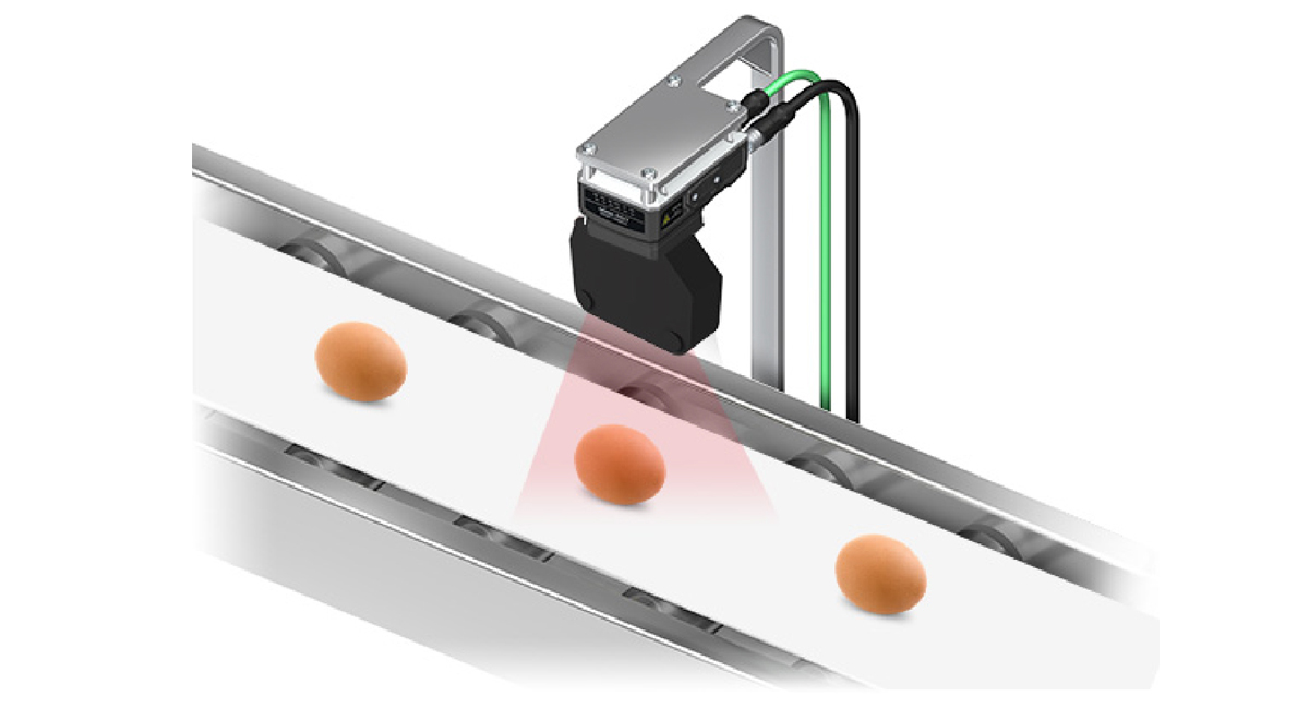 E3ZG-LS61L-P20为线性光斑传感器,在检测距离200mm的情况下光班宽度为30mm,有效覆盖弧度较高、表面反光较强的鸡蛋,增强回光率,实现稳定检测。