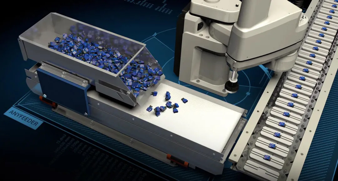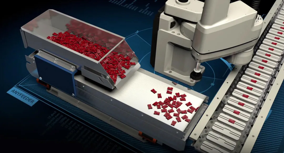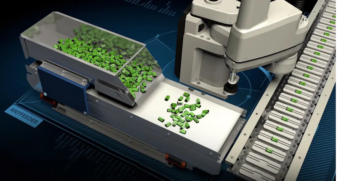 Anyfeeder能够对零件材质及质量等因素进行分析,制定特定的震动逻辑,通过振动盘实现同时振动,分别出料的目的,有效将混合物料区分开。