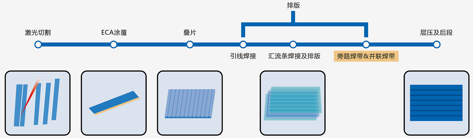 其中排版包含引线焊接、汇流条焊接及排版、旁路焊带及并联焊带。