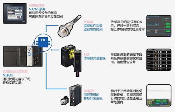 始终监视造成偶发性停机的传感器光量度(上升or下降)、伺服转矩异常、接近动作次数,通过设定阈值,达到预测性防护。