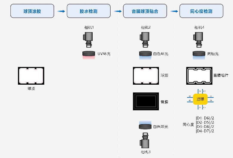 音膜球顶对位贴合作为扬声器组装工艺的关键部分,其组装的品质和效率更直接影响着扬声器的品质及产线效率。