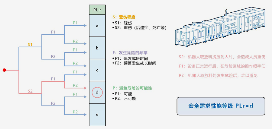 其次,风险评估,为了解决机器人的风险点,基于ISO13849-1(GB/T16855.1)的评定表如下图所示: