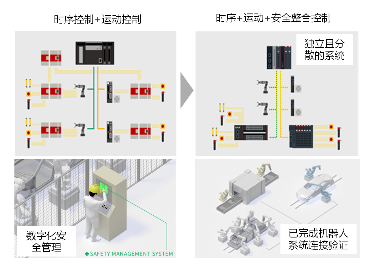 由符合PLC Open的变量编程和基于CIP Safety组成的高自由度配置,以此实现工序模组化。现有生产线也更容易进行部分变更。
