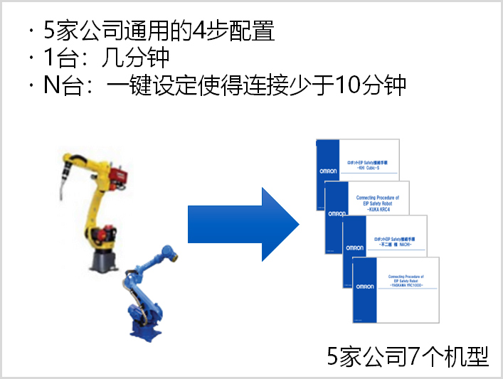 通过联合多家机器人制造商提供经过验证的通信零件,实现简单连接、启动。无需调整与工序特征、区域可采购性相符的机器人选型、机器人注册/设计/启动步骤