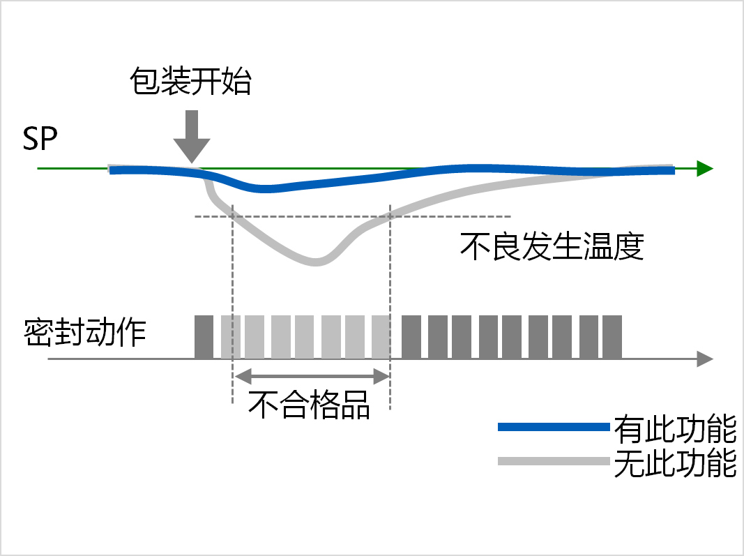 通过使用包装机用温度传感器和自动滤波器调整功能,即使提高速度,也能实现准确、稳定的密封温度测量