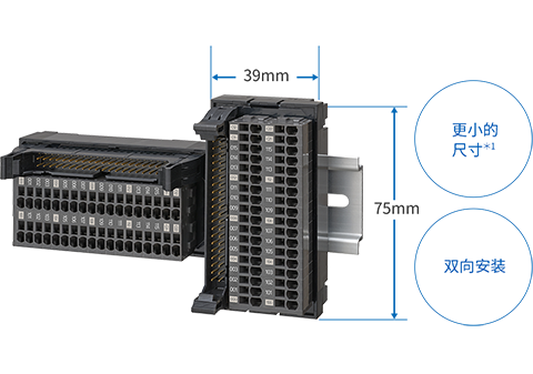 更小尺寸*1的连接器端子台有助于丰富控制柜功能和实现控制柜小型化。