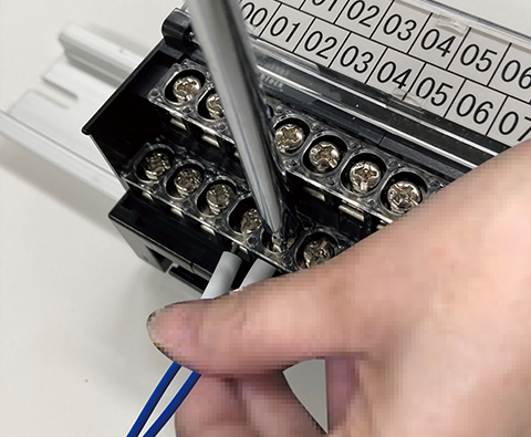 不会因振动脱落,无需加强拧紧Push-In Plus端子台通过弹簧结构固定端子 / 电线,不会因振动导致螺钉松动或脱落,所以无需反复确认以避免螺钉松动导致异物混入或者忘记拧紧螺钉。